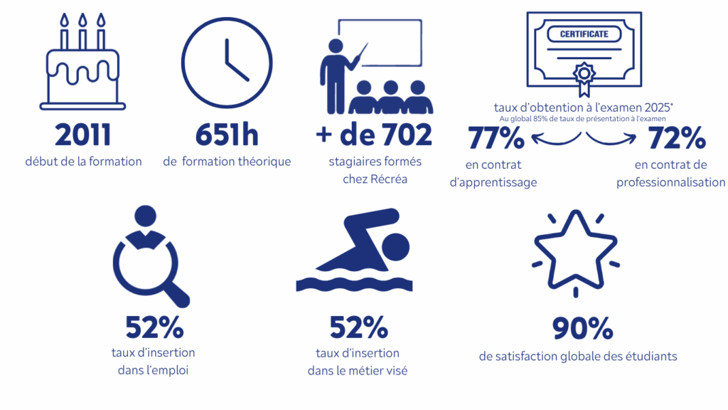 Chez Récréa, être maître-nageur c’est l’opportunité d’évoluer en interne sur des postes tels que chef de bassin ou coordinateur aquatique, directeur d’établissement.