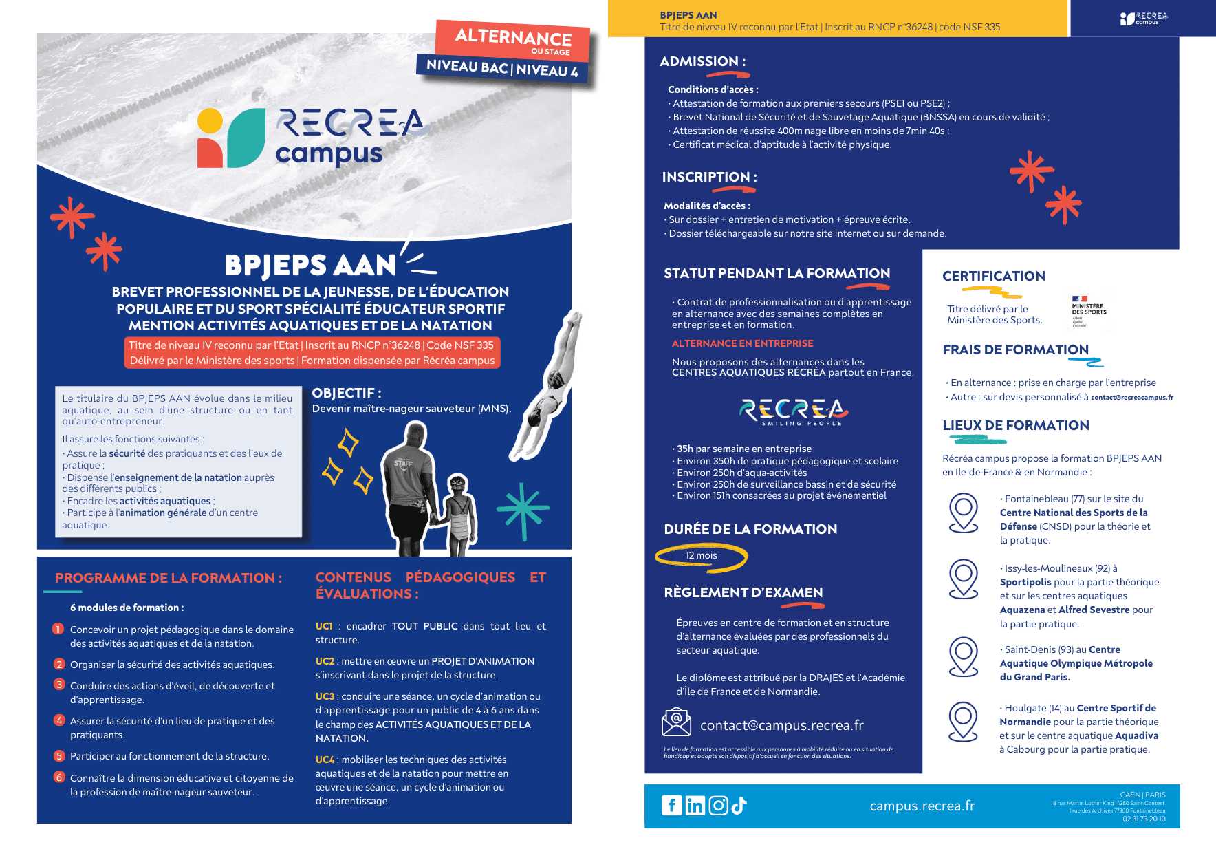 - Contrat d’apprentissage ou de professionnalisation en alternance dans l’un de nos centres aquatiques en France